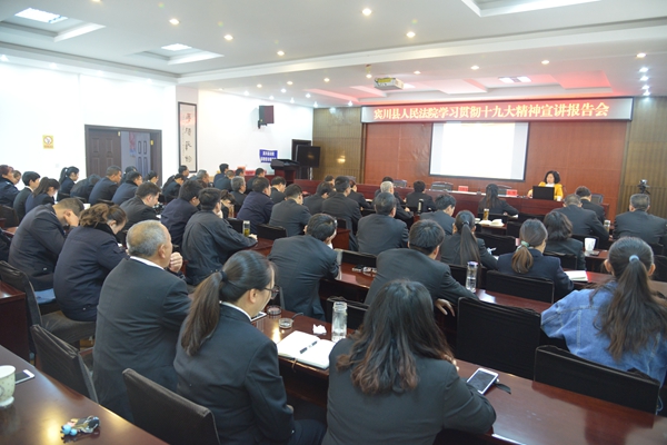 宾川法院将学习宣传贯彻党的十九大精神作为一项重要政治任务来抓,12月11日,邀请了县委党校高级讲师王琴为全院干警宣讲党的十九大精神,切实引导全院干警将思想、行动统一到十九大确定的各项目标任务上来。